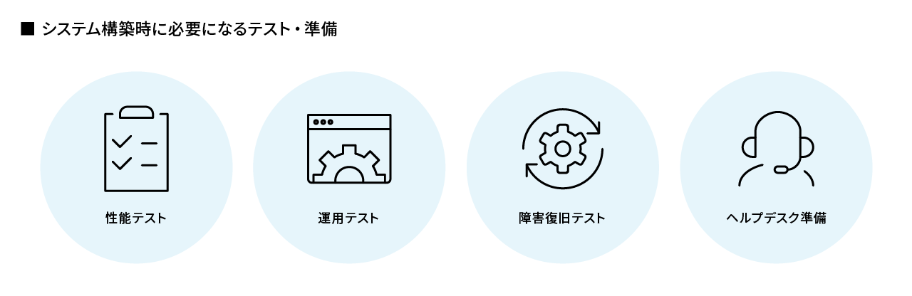実際のシステムでは利用者数やデータ量がPoCよりも大幅に増加します。業務要求やシステム要求で定めた条件が本当に満たされるのか、そして満たされない場合には回避策が機能するのかなどを、システム全体を対象にしてテストを行う必要があります。