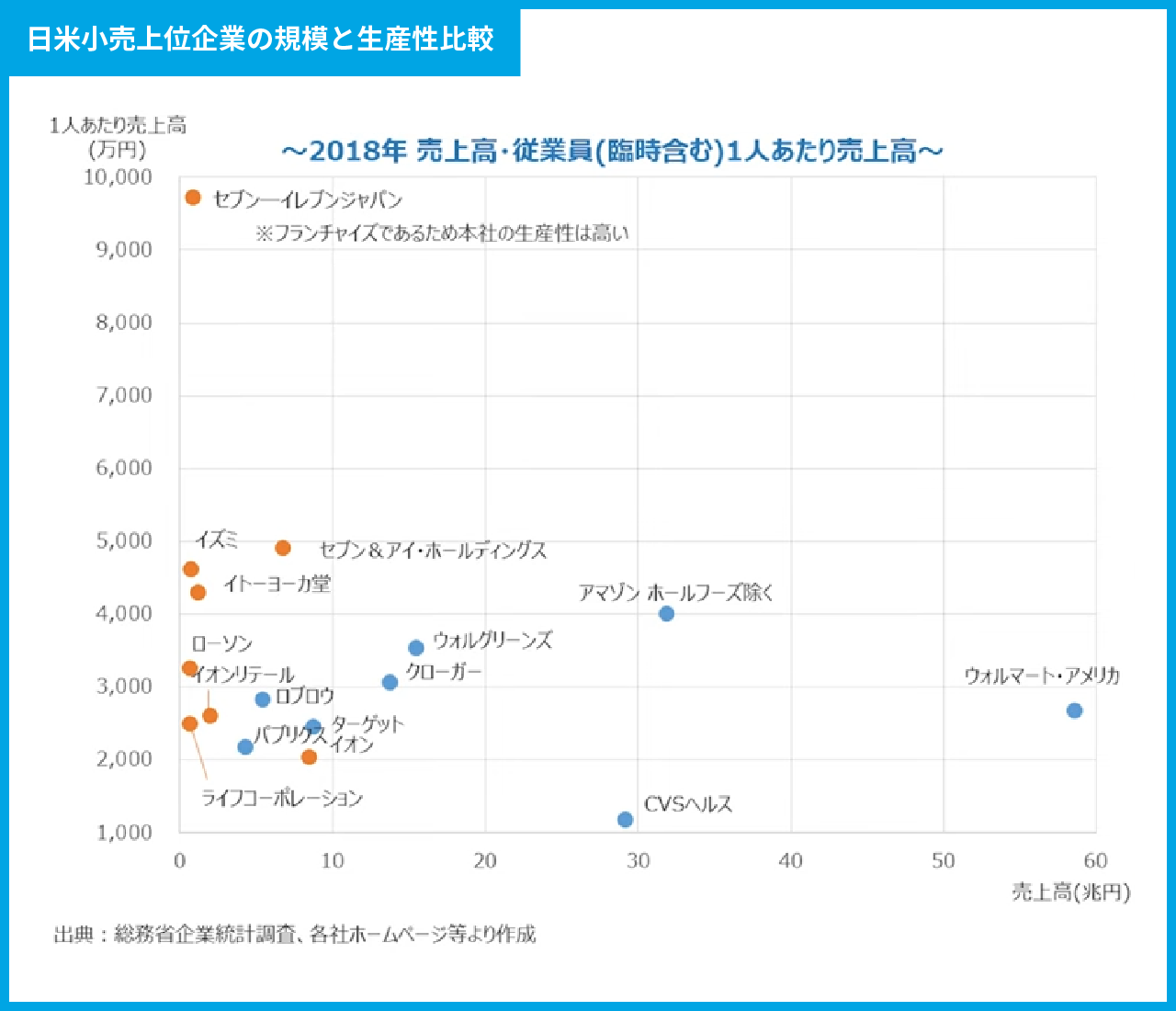 ■ 日米における小売上位企業の生産性比較