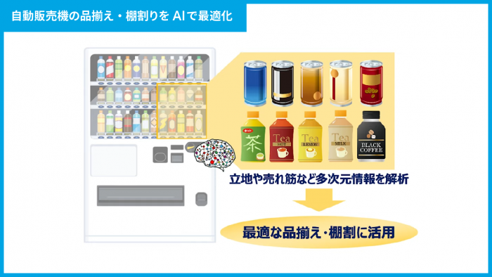 そういった特性をふまえた上で、AIによる分析を実施し、ある自動販売機で品揃えや棚割りに分析結果を活用し、1カ月間の実証実験を行った結果、売上は2.8%も上昇したという結果が出ています。棚割業務においては、AIの活用はすでに実用化できる段階になっていると考えます。